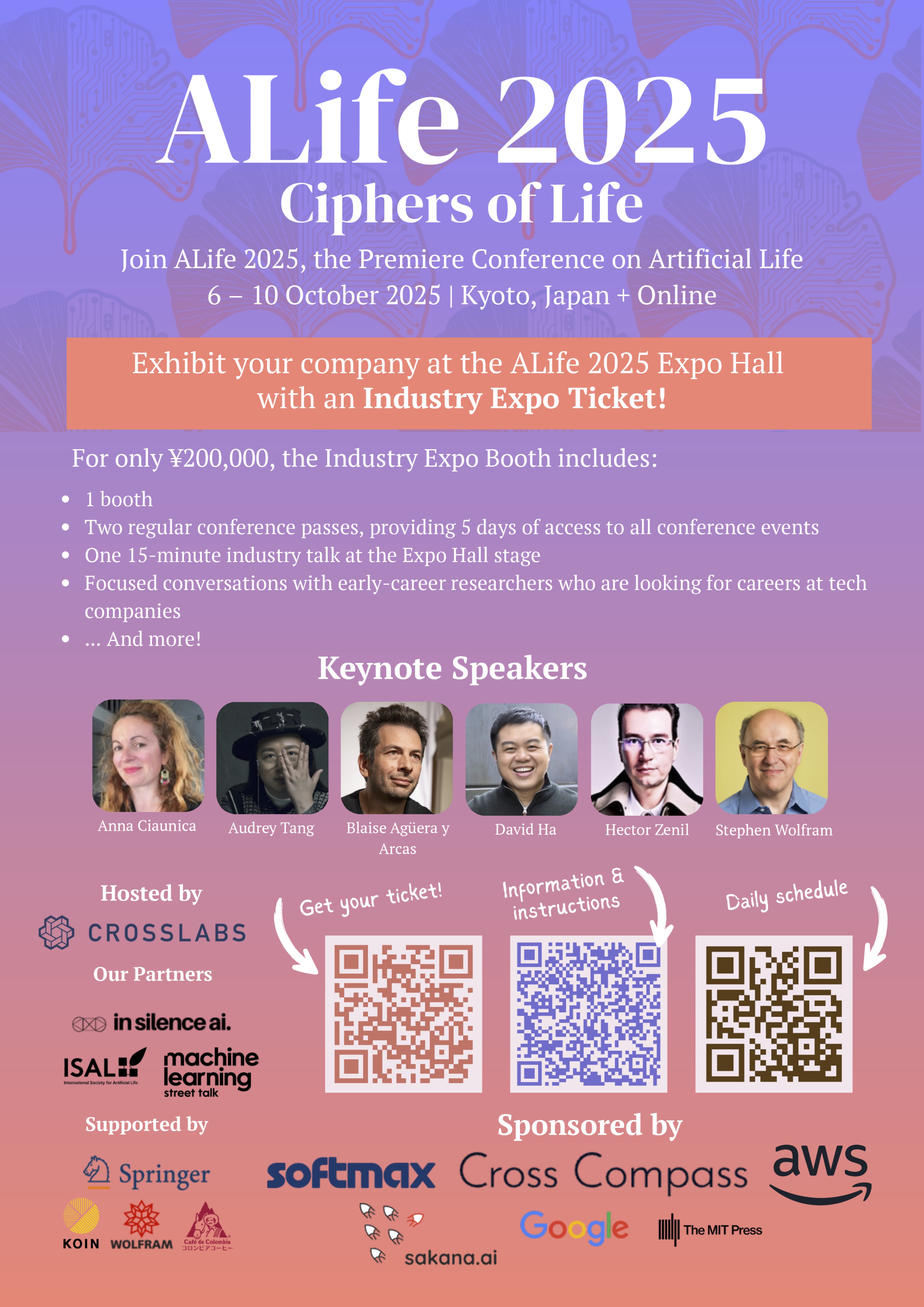 The ALIFE 2025 Conference invites companies and organizations to join us in showcasing their cutting-edge technology, innovative products, and career opportunities to more than 400 international researchers, scientists, and engineers.